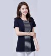100KG胖女可穿2022新款韩式条纹长袖T恤女式短袖加大码盖腹圆领时尚T恤连衣裙优雅衬衫女式T恤